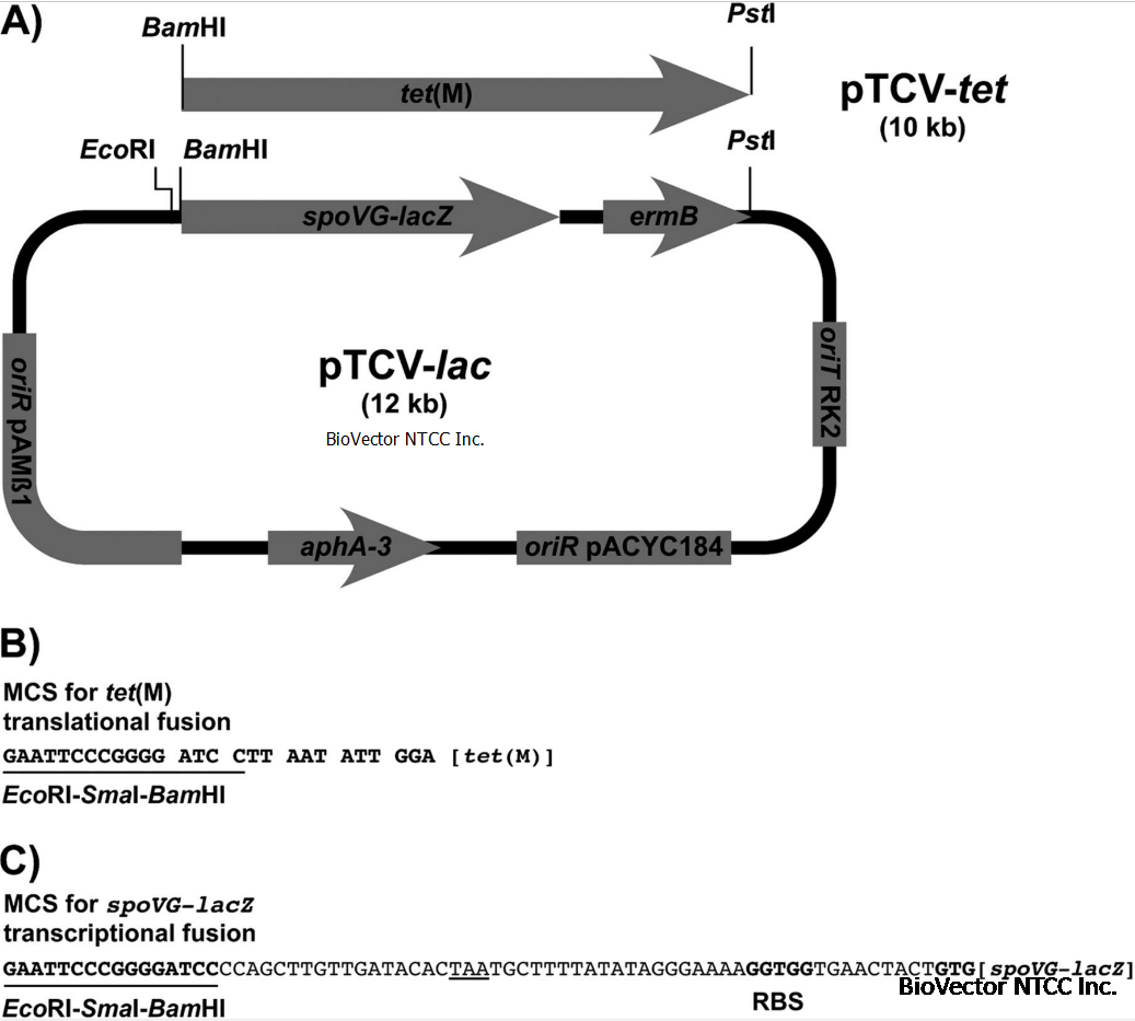 pTCV-lac粪肠球菌穿梭表达载体 BioVector NTCC质粒载体菌种细胞基因保藏中心