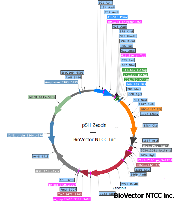 pSH-Zeocin酵母Cre重组酶组成型表达载体,表达Cre recombinase带有HA标签,NLS核定位信号。