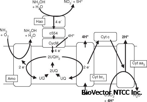 代谢特征: 专性化能自养。它通过将氨(NH₃)氧化为亚硝酸盐(NO₂⁻)来获取能量,并利用二氧化碳(CO₂)作为碳源进行生物量合成。