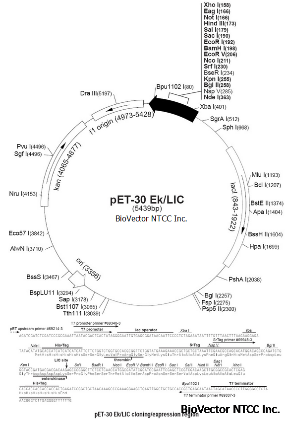 pET30 EK/LIC大肠杆菌蛋白表达载体-BioVector NTCC质粒载体菌种细胞蛋白抗体基因保藏中心