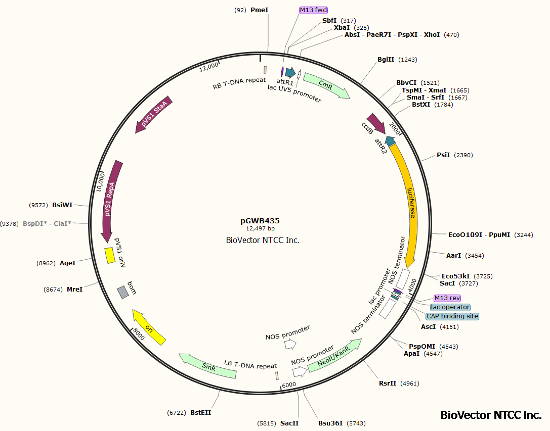 pGWB435植物萤火虫酶荧光报告载体启动子检测质粒-BioVector NTCC质粒载体菌种细胞蛋白抗体基因保藏中心