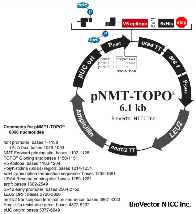 pNMT-TOPO 酵母表达载体