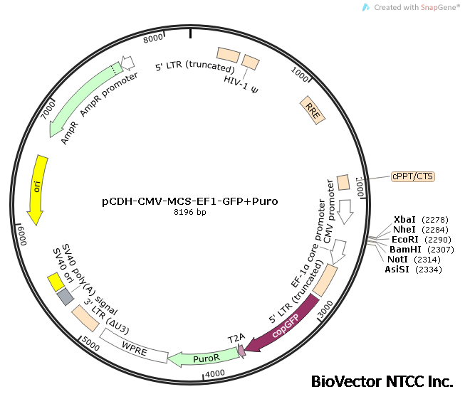 产品名称: CD513B pCDH-CMV-MCS-EF1-GFP-puro