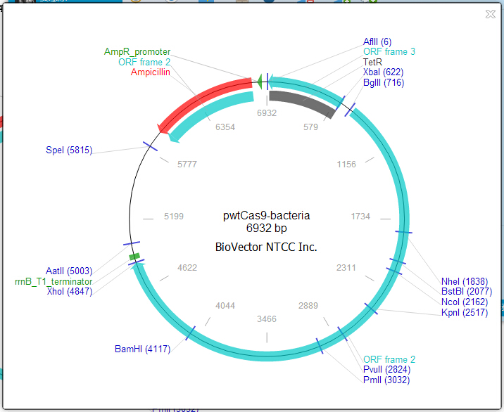 pwtCas9-bacteria细菌CRISPR/Cas9载体质粒,含有野生型Cas9元件,TetO四环素诱导调控-BioVector NTCC保藏中心