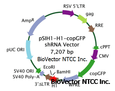 pSIH1-H1-CopGFP慢病毒shRNA荧光表达载体基因沉默载体 BioVector NTCC质粒载体菌种细胞基因保藏中心