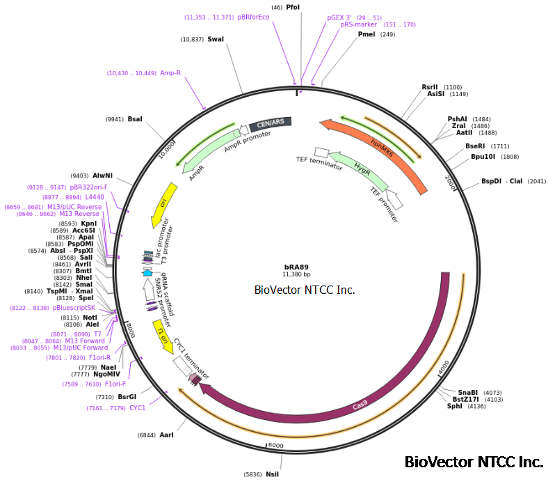 bRA89酵母基因编辑载体CRISPR-Cas9系统质粒 BioVector NTCC质粒载体菌种细胞基因保藏中心