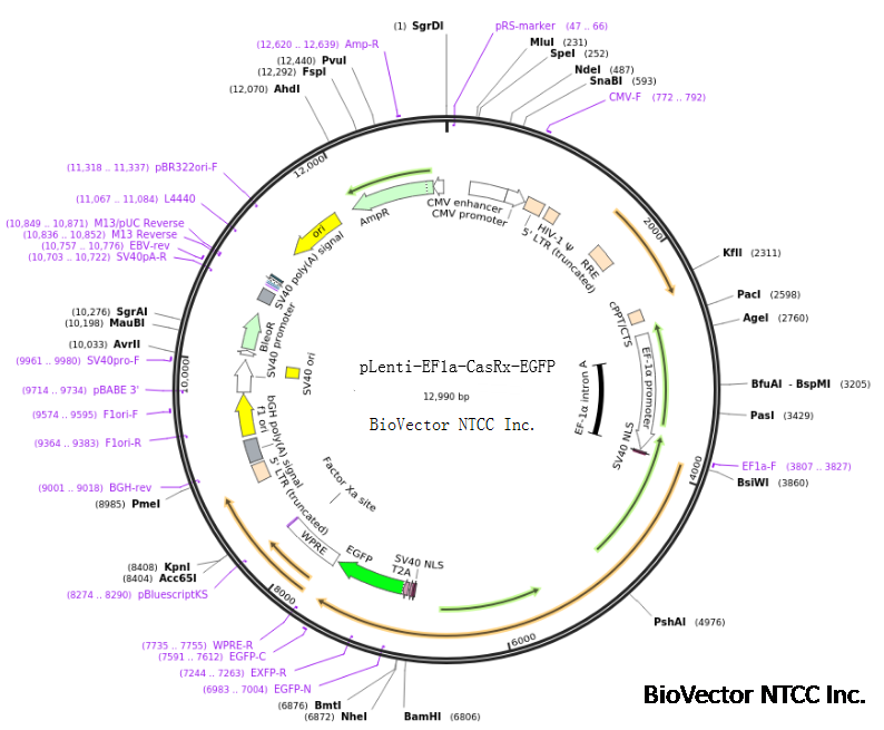 pLenti-EF1a-CasRx-EGFP基因编辑RNA靶向载体 BioVector NTCC质粒载体菌种细胞基因保藏中心