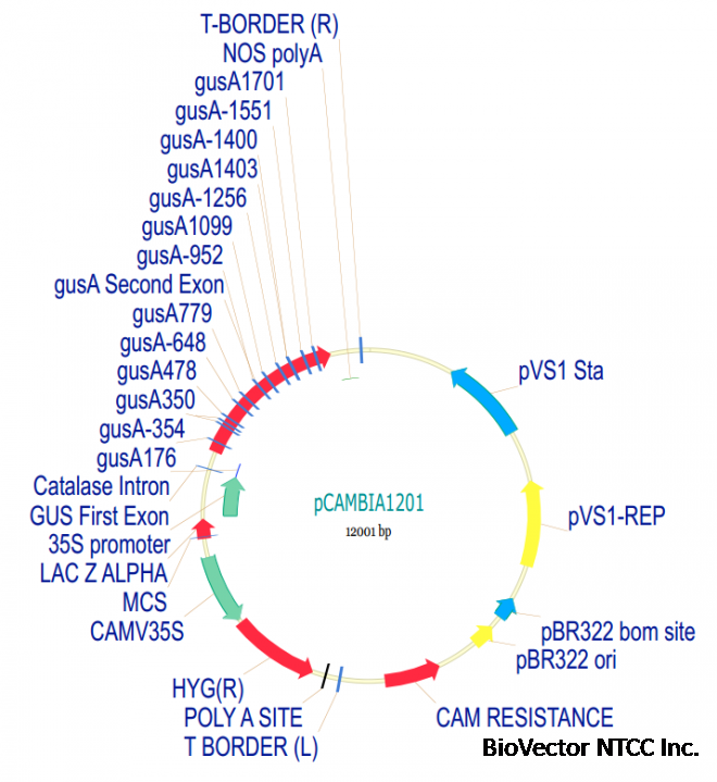 pCAMBIA1201植物过表达载体GUS报告基因Cm氯霉素抗性 BioVector NTCC质粒载体菌种细胞基因保藏中心