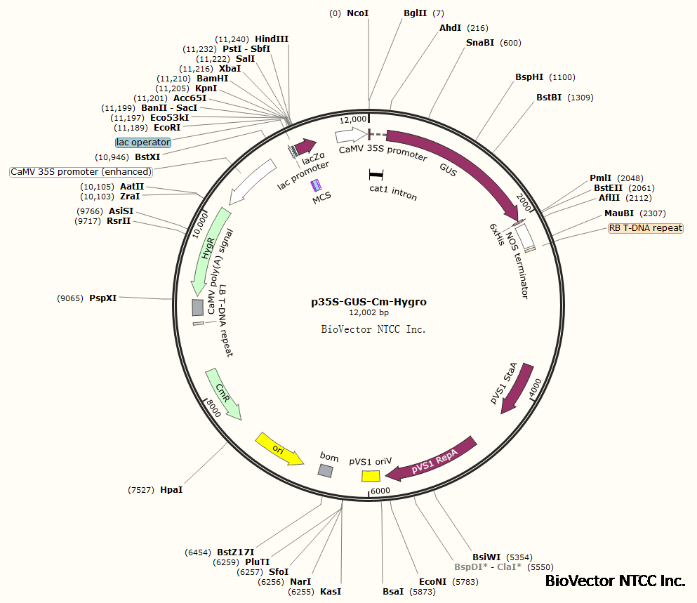 p35S-GUS-Cm-Hygro植物过表达载体 BioVector NTCC质粒载体菌种细胞基因保藏中心