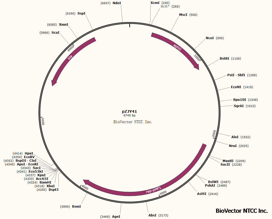 pZJY41粘细菌黄色粘球菌穿梭表达载体 BioVector NTCC质粒载体菌种细胞基因保藏中心