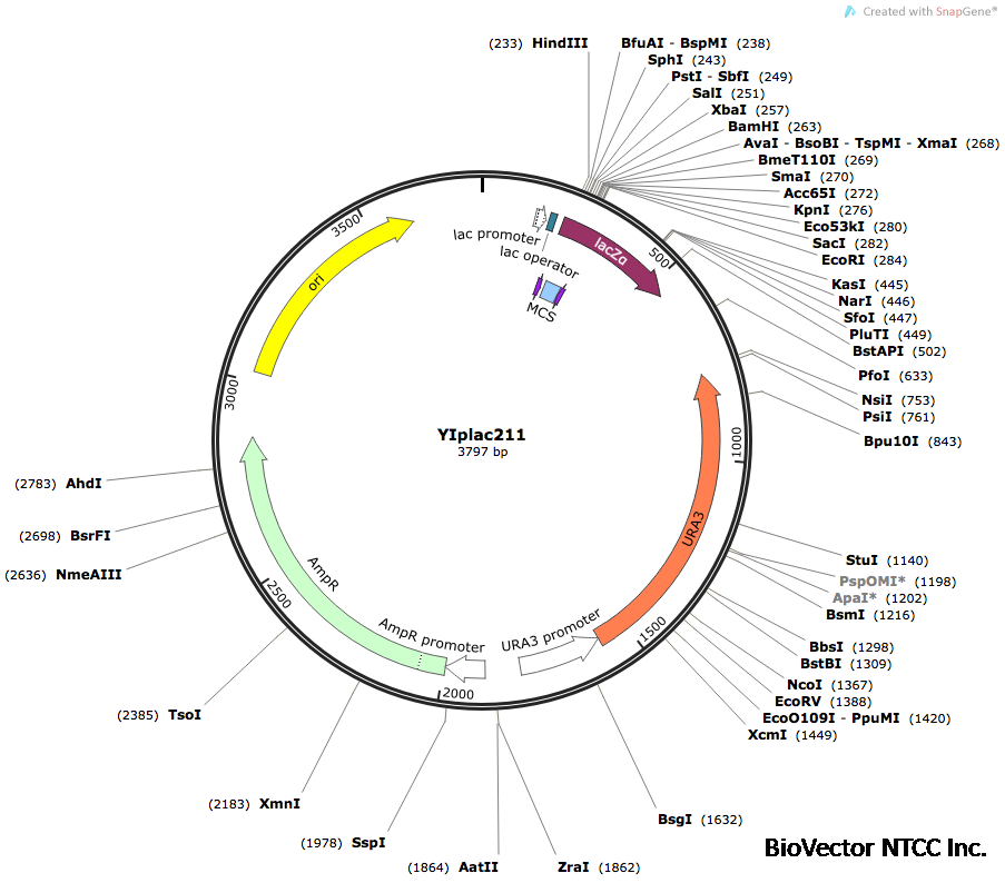 YIplac211酵母整合型表达载体 BioVector NTCC质粒载体菌种细胞基因保藏中心