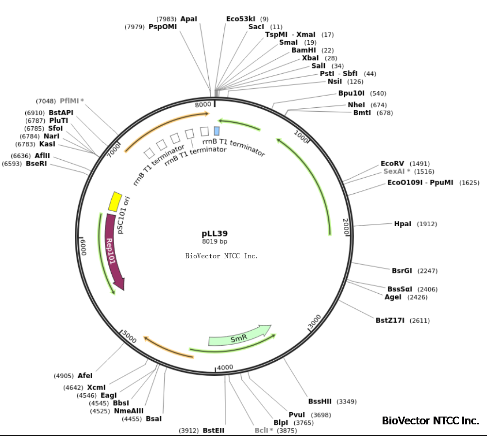 pLL39金黄色葡萄球菌整合型表达质粒载体带有随机终止子 BioVector NTCC质粒载体菌种细胞基因保藏中心