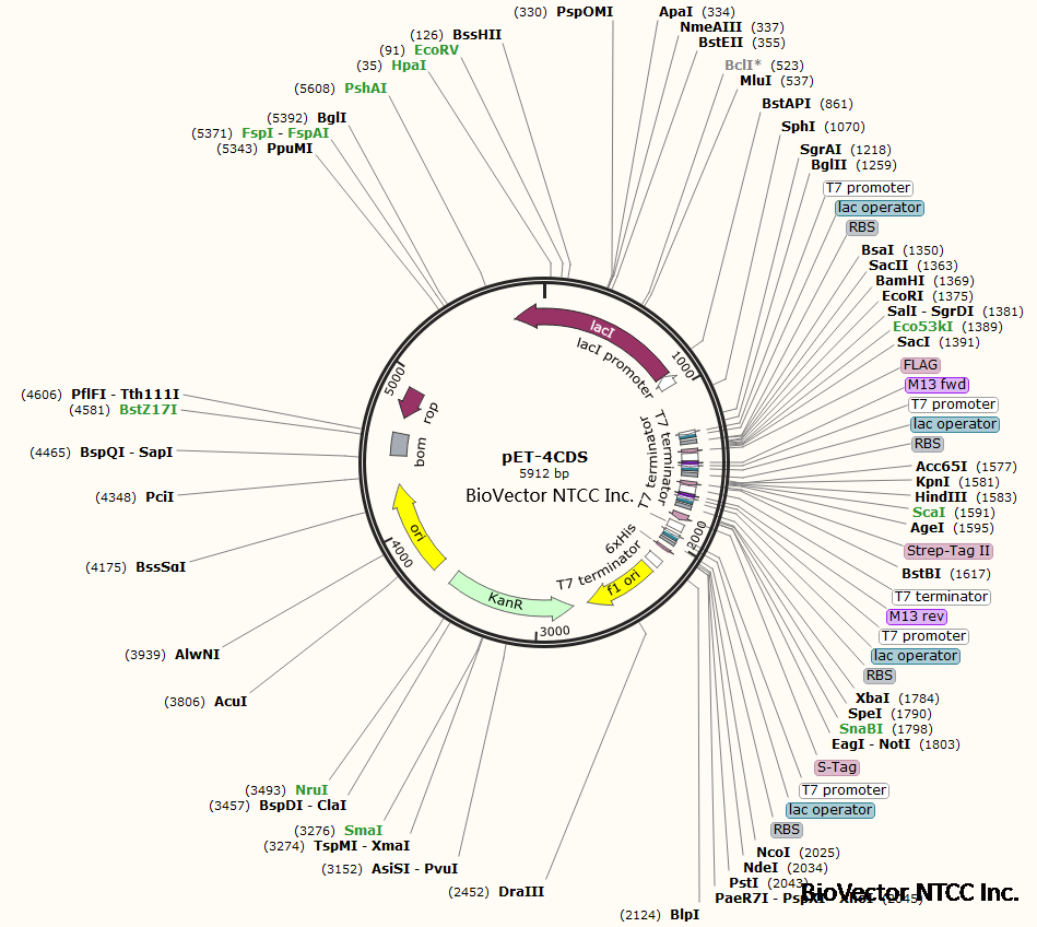 pET-4CDS大肠杆菌四基因表达载体 BioVector NTCC质粒载体菌种细胞基因保藏中心