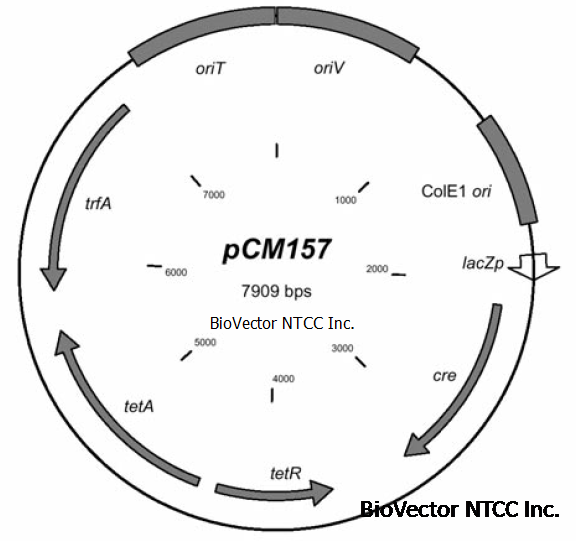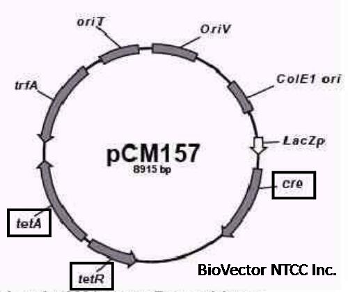 pCM157质粒Cre重组酶原核表达载体,cre recombinase Bacterial Expression,四环素抗性,骨架载体pCM62. Cre重组酶基因来源于Enterobacteria phage P1.