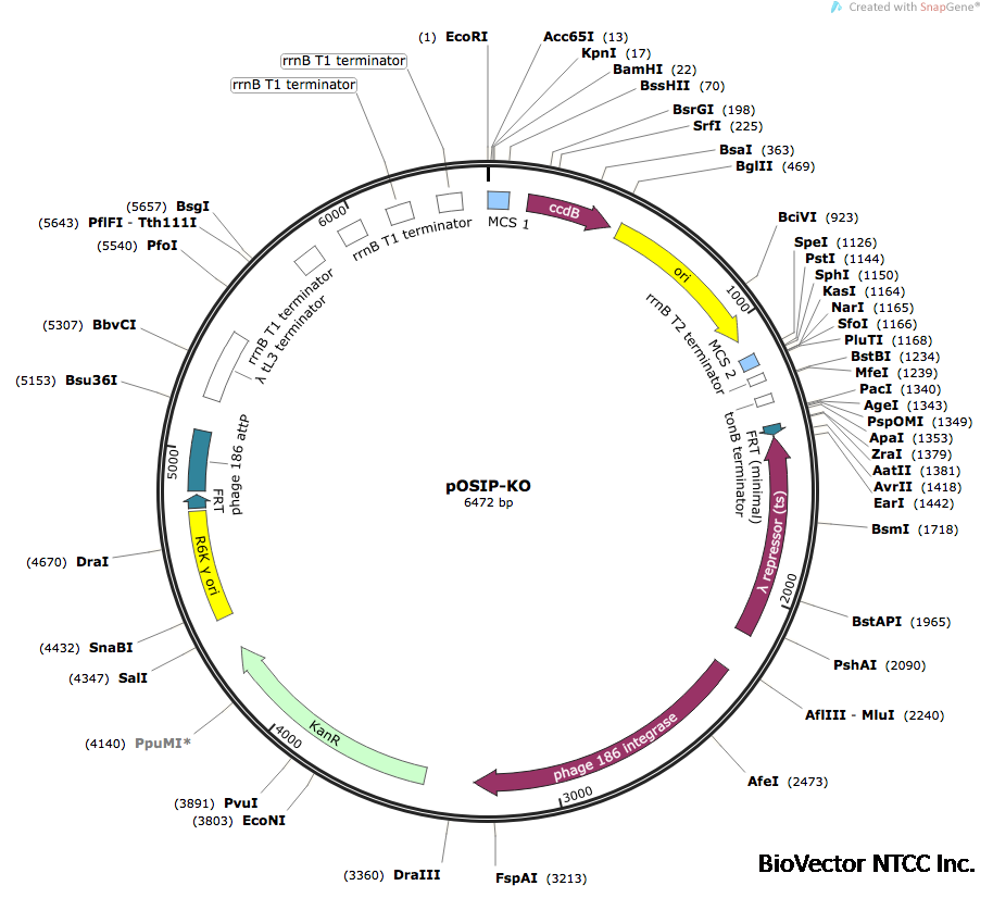 pOSIP-KO载体克隆质粒-BioVector NTCC质粒载体菌种细胞基因保藏中心