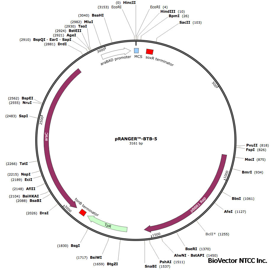 pRANGER-BTB-5载体克隆质粒-BioVector NTCC质粒载体菌种细胞基因保藏中心