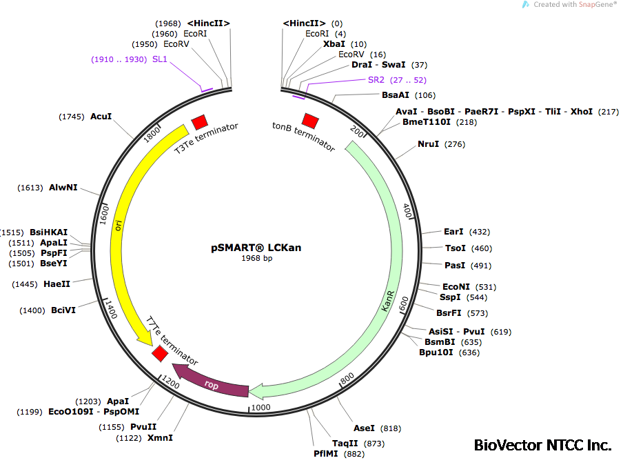 pSMART LCKan (linearized)载体克隆质粒-BioVector NTCC质粒载体菌种细胞基因保藏中心