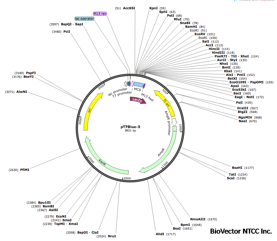 pT7Blue-3载体克隆质粒-BioVector NTCC质粒载体菌种细胞基因保藏中心