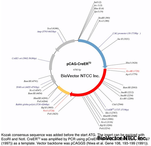 pCAG-CreERT2 plasmid 哺乳动物细胞Cre重组酶表达质粒-BioVector NTCC质粒载体菌种细胞基因保藏中心