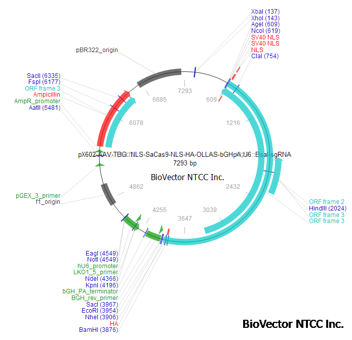 pX602-AAV-TBG::NLS-SaCas9-NLS-HA-OLLAS-bGHpA;U6::BsaI-sgRNA BioVector NTCC质粒载体菌种细胞基因保藏中心