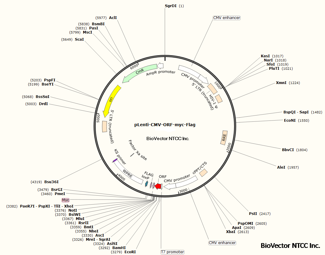 pLenti-CMV-ORF-myc-Flag BioVector NTCC质粒载体菌种细胞基因保藏中心