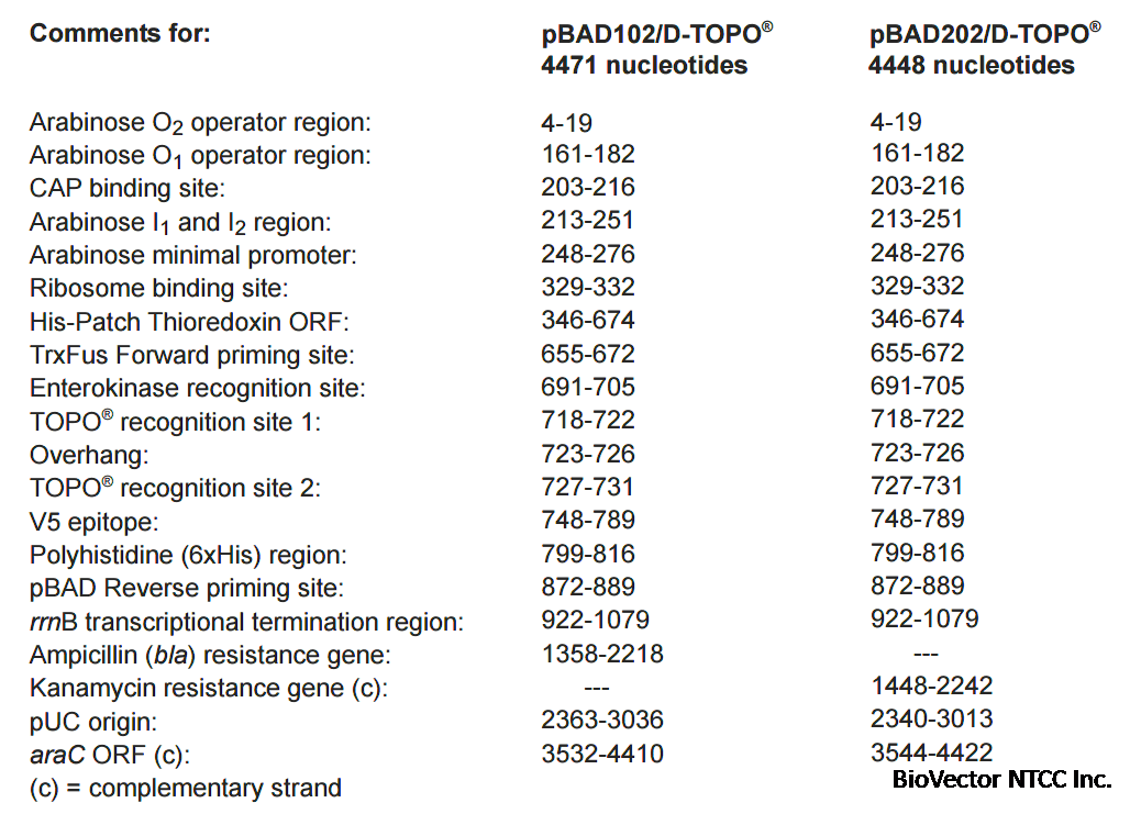 pBAD102/D-TOPO大肠杆菌表达载体;诱导表达载体;BioVector NTCC质粒载体菌种细胞基因保藏中心