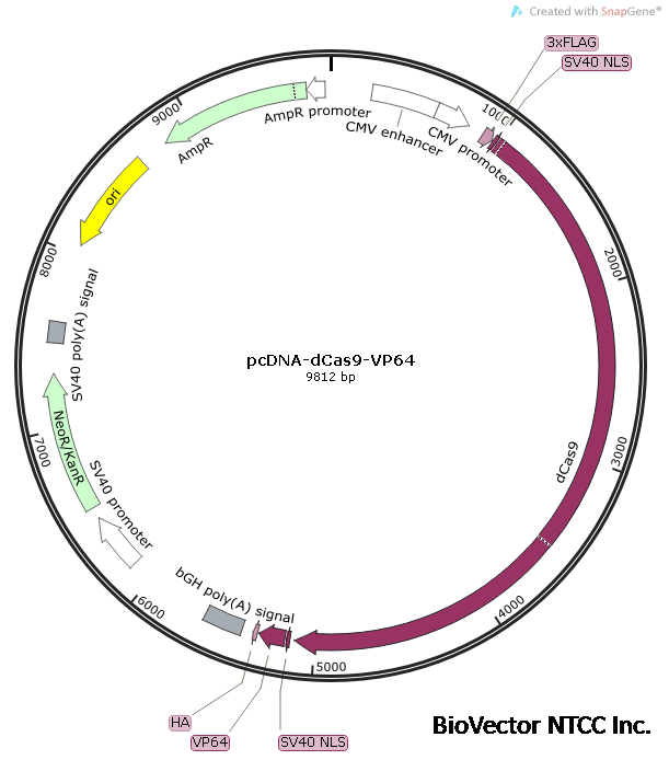 pCDNA-dcas9-VP64载体CRISPR/Cas系统-BioVector NTCC质粒载体菌种细胞基因保藏中心