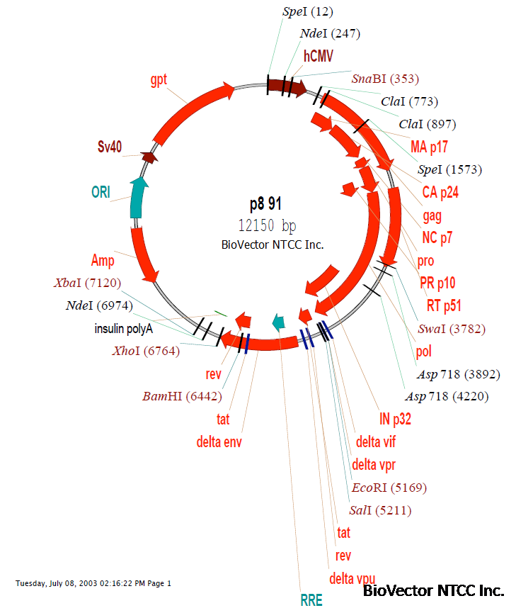 pCMV dR8.91慢病毒包装质粒-BioVector NTCC质粒载体菌种细胞基因保藏中心