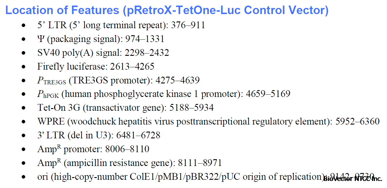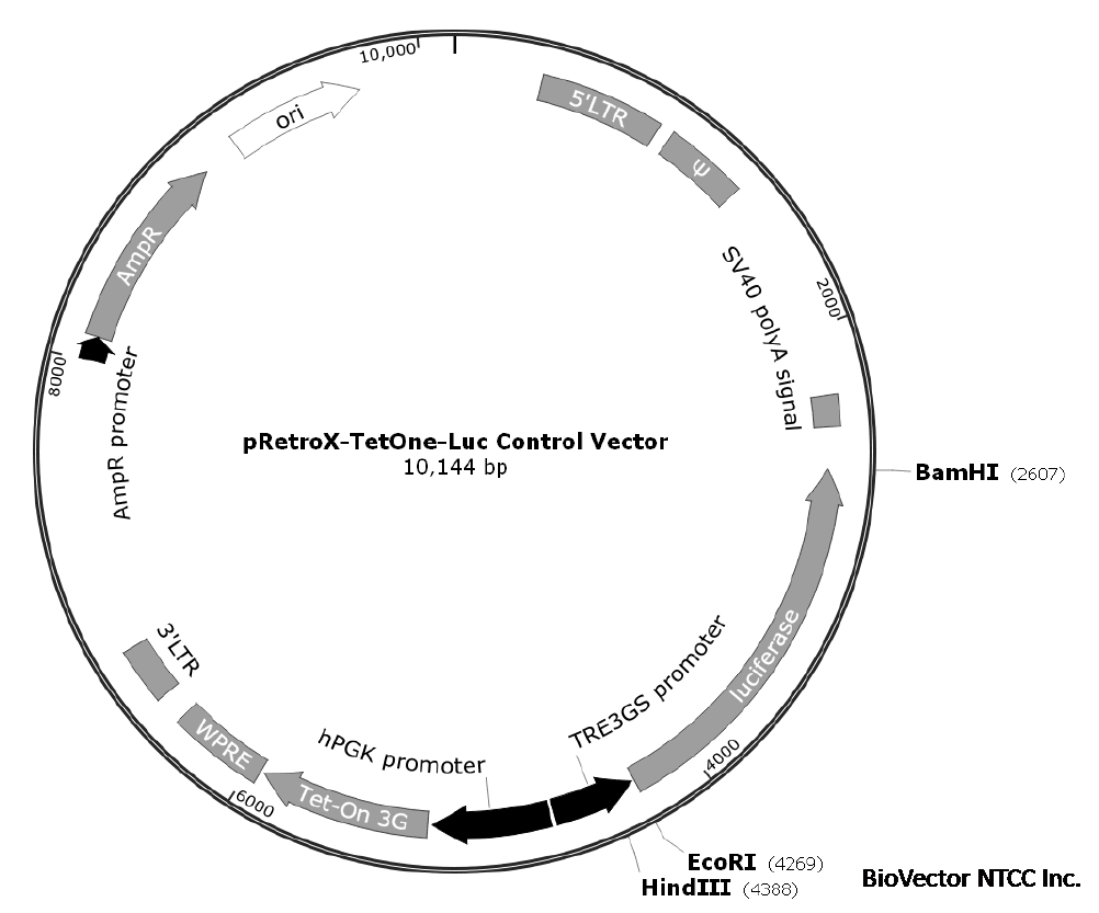 pRetroX-TetOne-luc vector四环素调控诱导逆转录病毒载体-BioVector NTCC质粒载体菌种细胞基因保藏中心