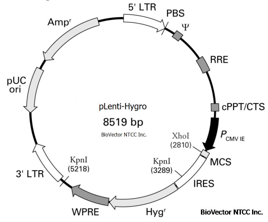 pLenti-Hygro慢病毒过表达载体pLenti-CMV-Hygro,pLenti-CMV-IRES-Hygro -BioVector NTCC质粒载体菌种细胞蛋白抗体基因保藏中心