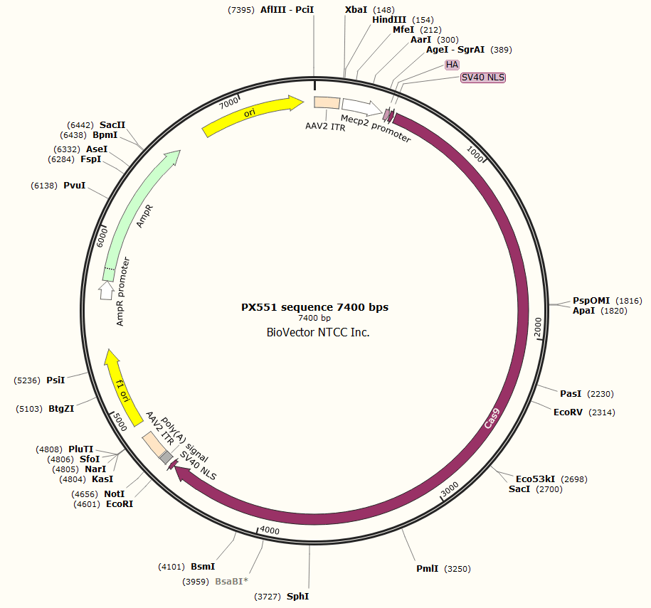 pX551腺相关病毒CRISPR/Cas9基因编辑系统载体mecp2启动子-BioVector NTCC质粒载体菌种细胞蛋白抗体基因保藏中心