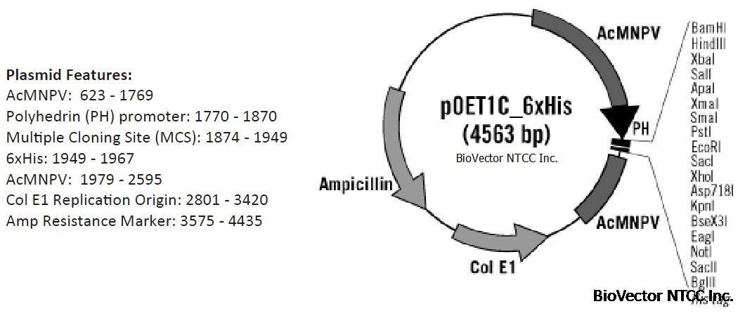 pOET1C-6xHis昆虫杆状病毒表达载体-BioVector NTCC质粒载体菌种细胞蛋白抗体基因保藏中心
