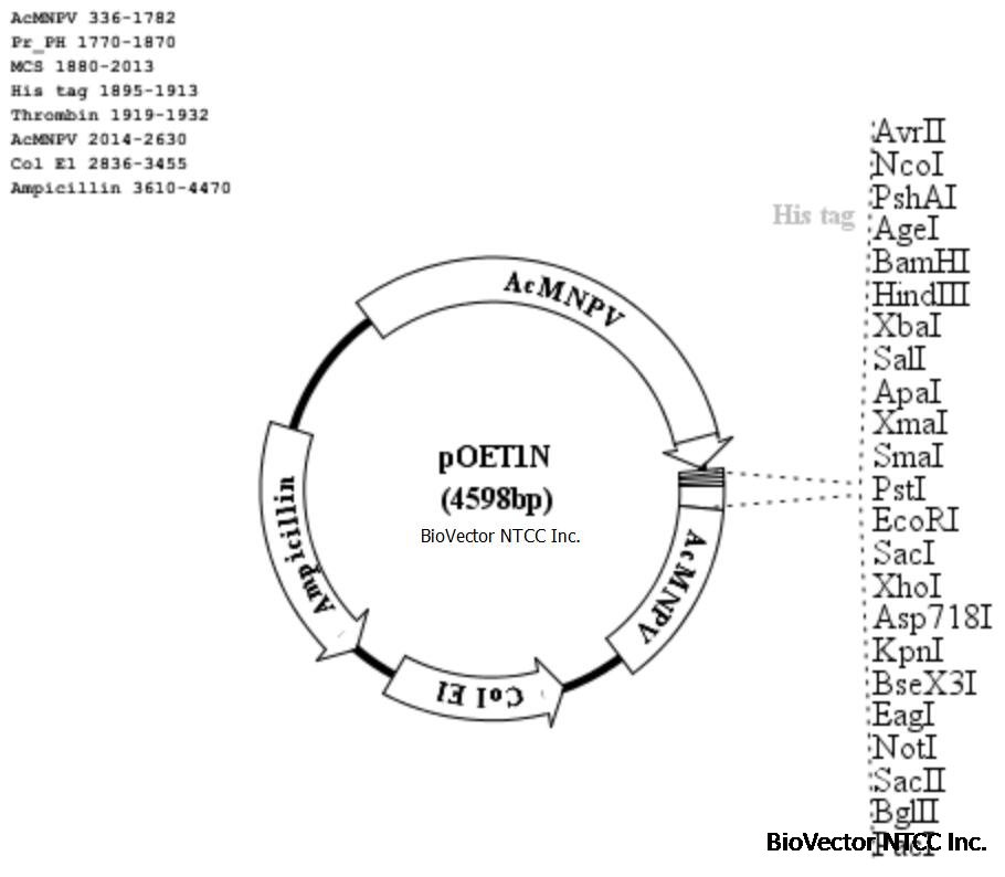 pOET1N昆虫杆状病毒表达载体-BioVector NTCC质粒载体菌种细胞蛋白抗体基因保藏中心