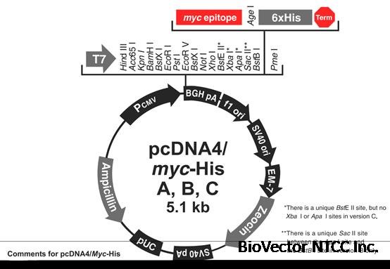 pcDNA4-Myc-His A,B,C表达载体-BioVector NTCC质粒载体菌种细胞蛋白抗体基因保藏中心