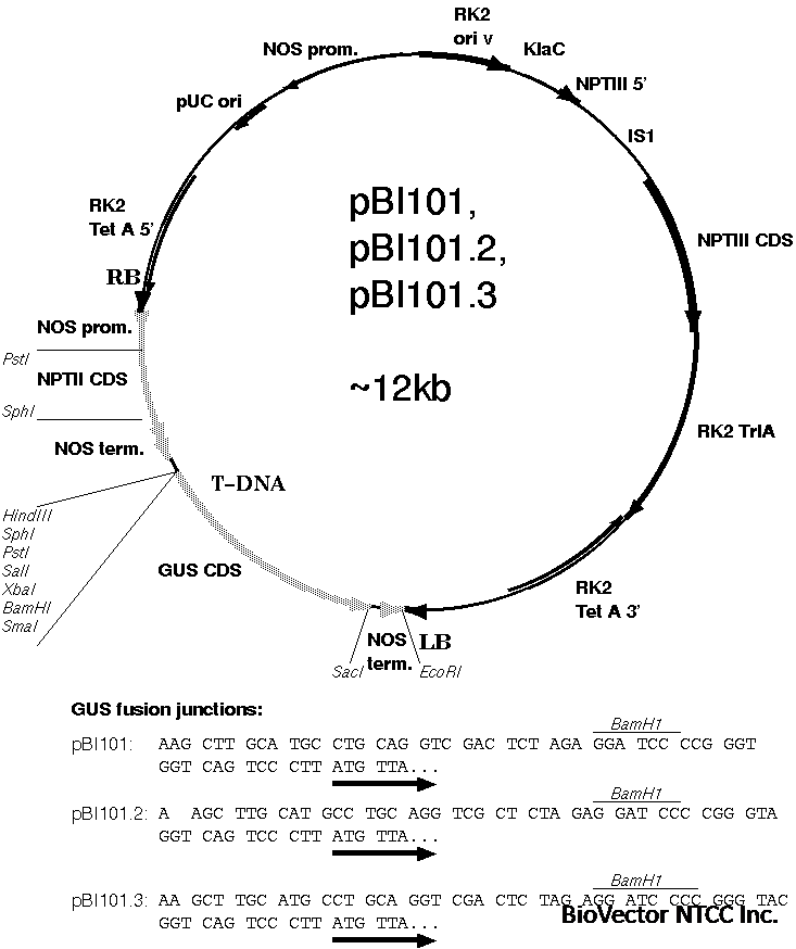 pBI101植物双元过表达载体GUS报告基因 -BioVector NTCC质粒载体菌种细胞蛋白抗体基因保藏中心