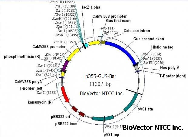 p35S-GUS-Bar植物抗除草剂基因过表达载体-BioVector NTCC质粒载体菌种细胞蛋白抗体基因保藏中心