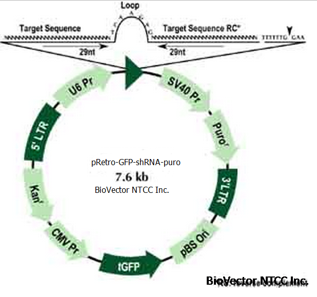 pRetro-GFP-shRNA-puro逆转录病毒shRNA干扰载体-BioVector NTCC质粒载体菌种细胞蛋白抗体基因保藏中心