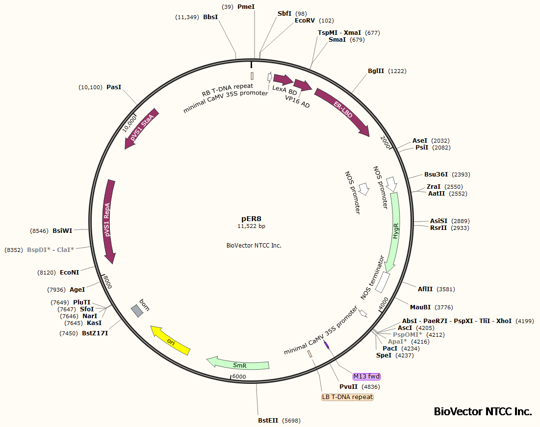 pER8植物雌二醇雌激素诱导表达载体-BioVector NTCC质粒载体菌种细胞蛋白抗体基因保藏中心
