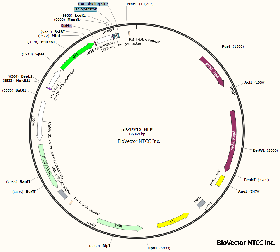 pPZP212-GFP植物双元荧光表达载体-BioVector NTCC质粒载体菌种细胞蛋白抗体基因保藏中心