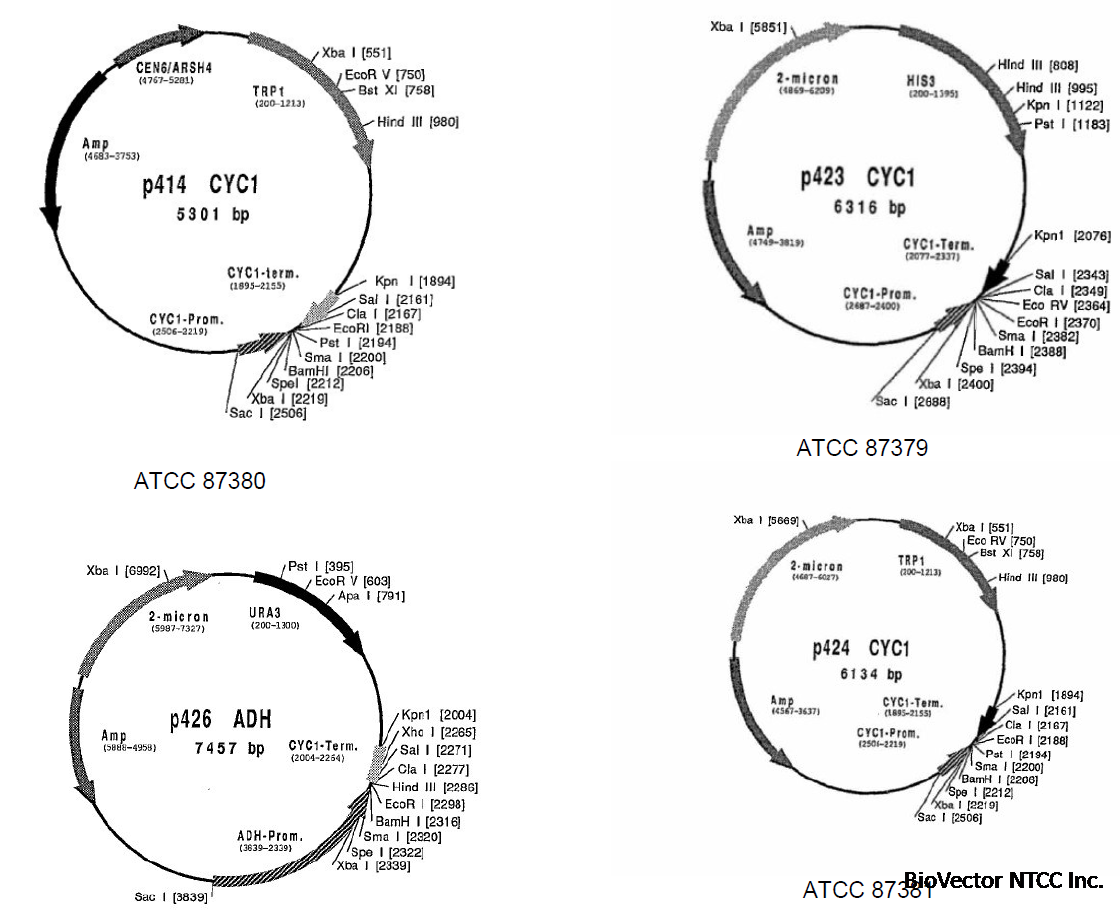 p414 CYC1,p423 CYC1,p424 CYC1,p426 ADH,酵母高拷贝表达载体
