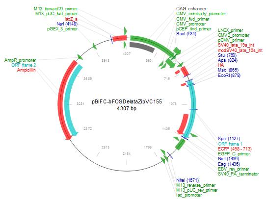 pBiFC-bFOSDelataZipVC155哺乳动物细胞双分子荧光互补载体-BioVector NTCC质粒载体菌种细胞蛋白抗体基因保藏中心
