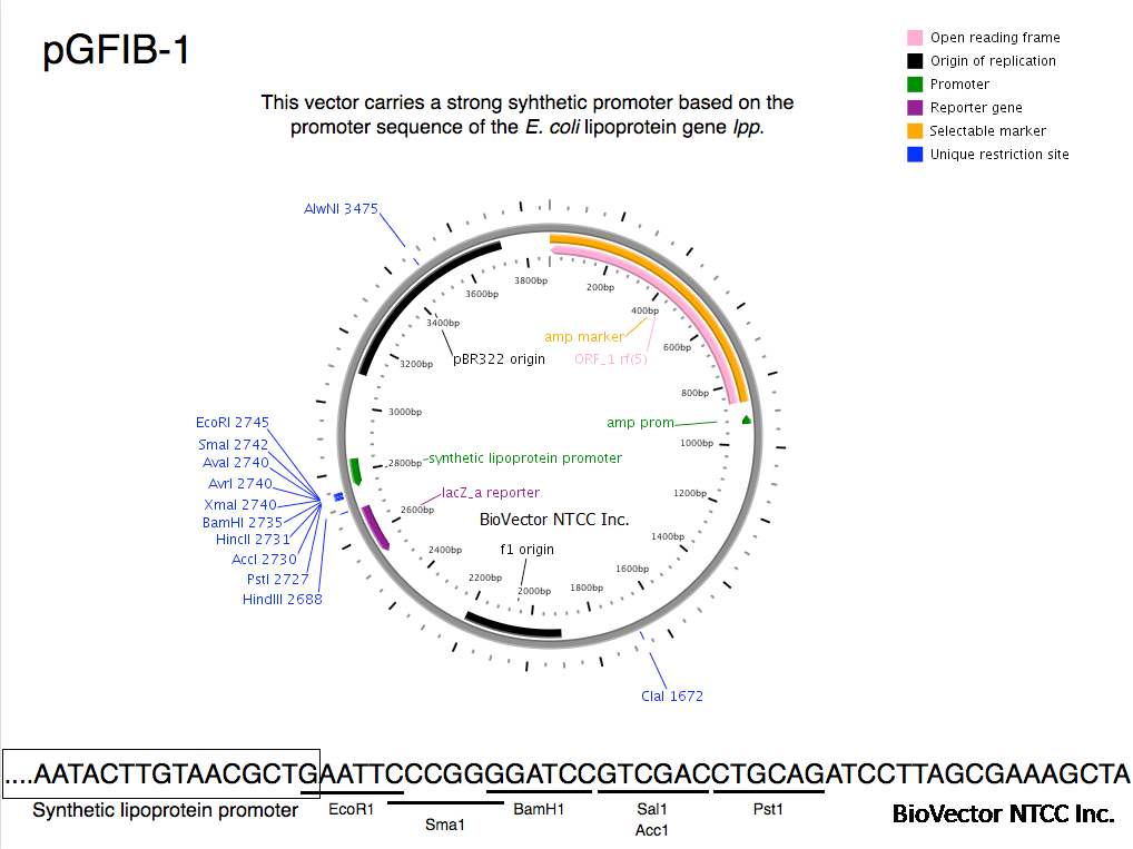 pGFIB-1表达载体,带有E.coli lipoprotein lpp强启动子,Amp抗性