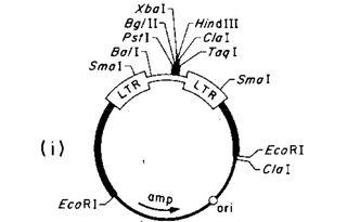 pBR322 DNA (narrow black line). The LTRs are Moloney murine leukemia virus (MoMLV) long terminal repeats (LTRs).