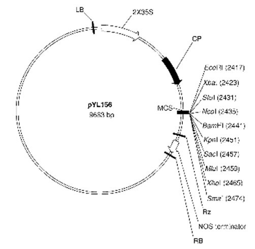 pTRV2-MCS病毒介导的植物RNAi载体VIGS质粒图谱序列抗性说明书BioVector NTCC保藏中心